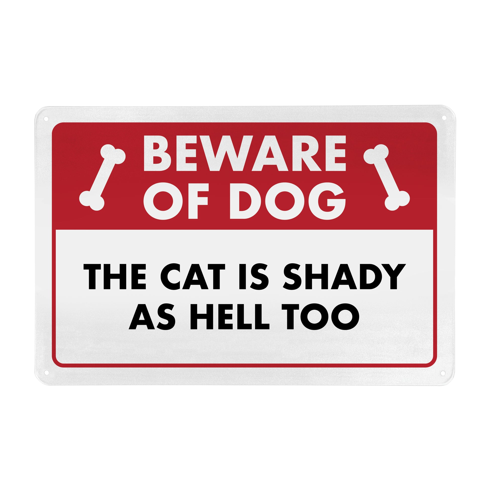 Beware of Dog - The Cat is Shady as Hell Too - 8" x 12" Funny Metal Sign
