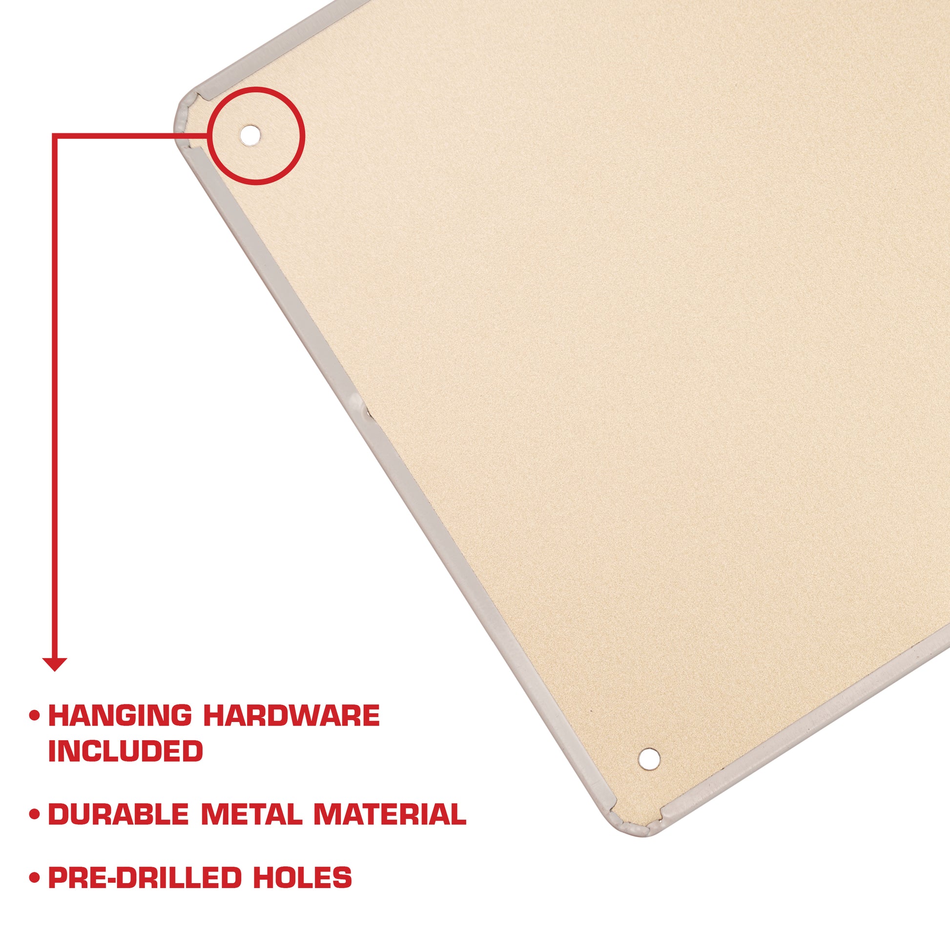 Made of durable steel and pre-drilled with holes, these signs come with nails, screws, and hook and loop adhesive strips for easy mounting, so you can have your new sign up on the wall in no time.